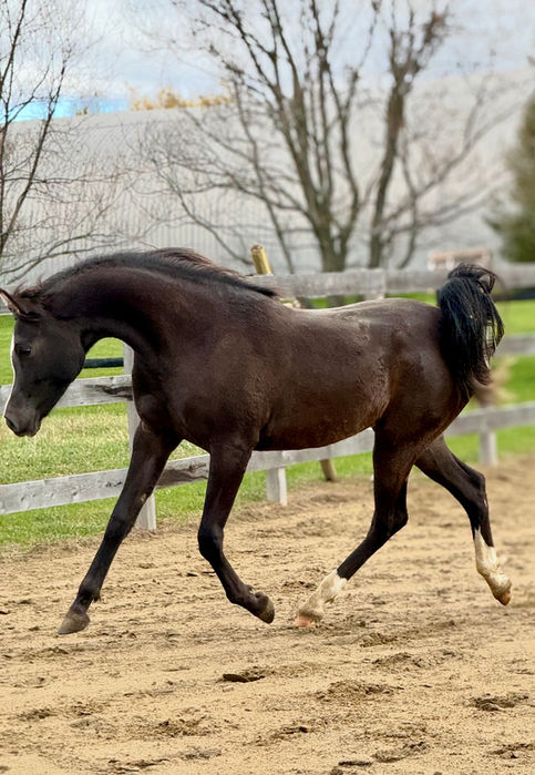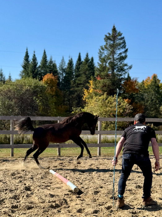 The amazing black pearl. Bred here in Quebec, by our dear friend Gérald Leblanc. Arabie is full of arabian type. She is feminine yet very athletic (she never (ever!) miss a correct lead at the canter) and she is correct all over. She’s still young but she shows great promise for her future with us as a broodmare. She is going to be in training with Al Gruppen for this year.